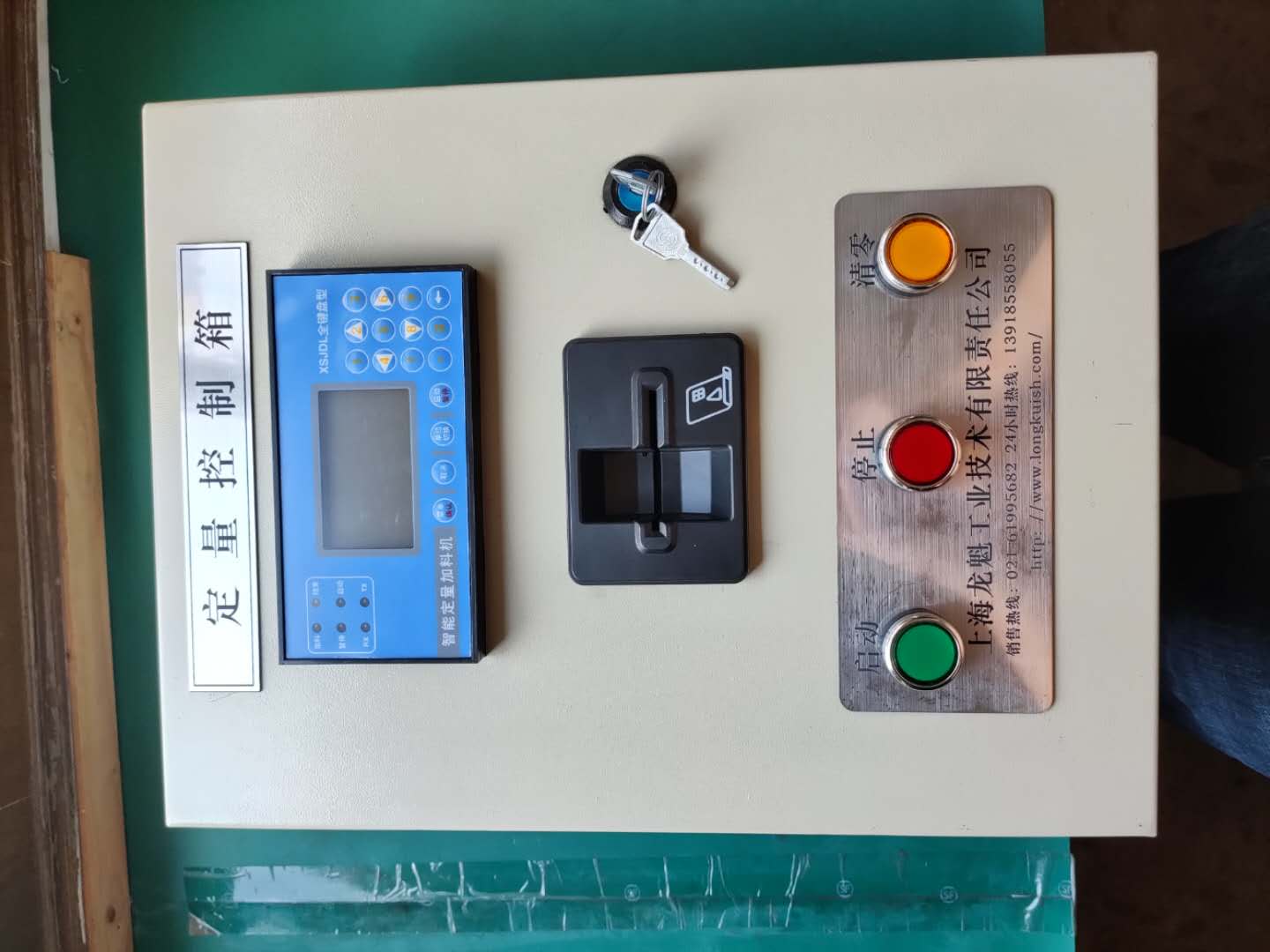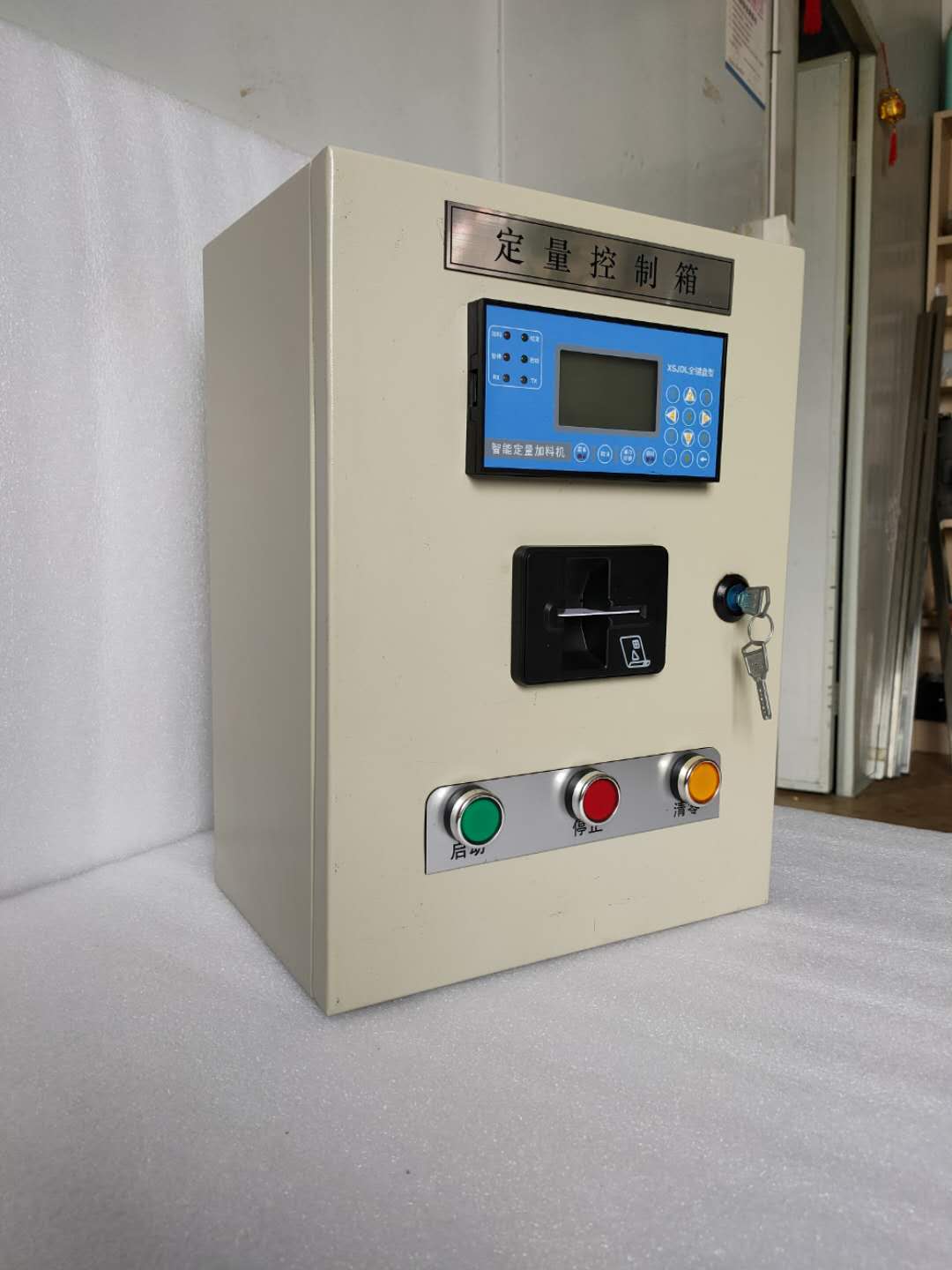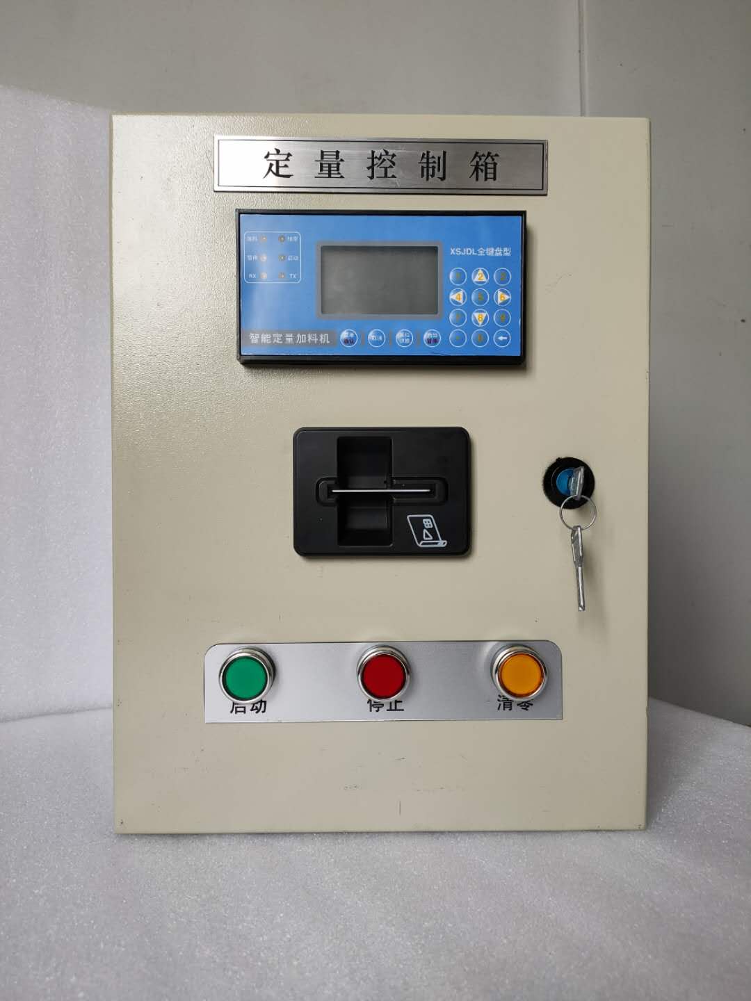 2、IC卡操作控制器:即現(xiàn)場(chǎng)用戶操作器,功能類(lèi)似于加油站插卡加油功能。控制器內(nèi)含插卡器、全中文顯示儀、操作按鈕、指示燈、空開(kāi)、繼電器等,標(biāo)準(zhǔn)尺寸200*300*400mm,供電AC220V或DC24V可選。采用的是全中文液晶屏顯示與操作,用戶使用操作極其簡(jiǎn)單、方便,等同于加油機(jī)的操作。