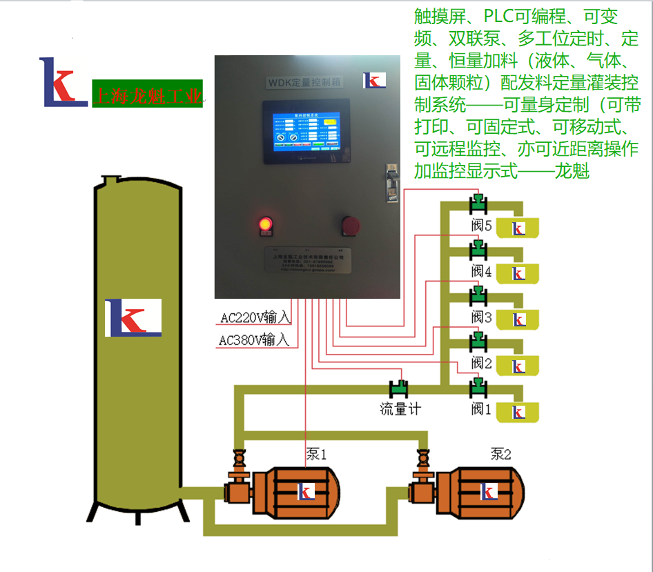 5、PLC觸摸屏雙聯泵多工位配發(fā)料定?量?控?制?系?統(tǒng)的定量控制柜可加變頻器控制電機轉速來恒定補液的速度;